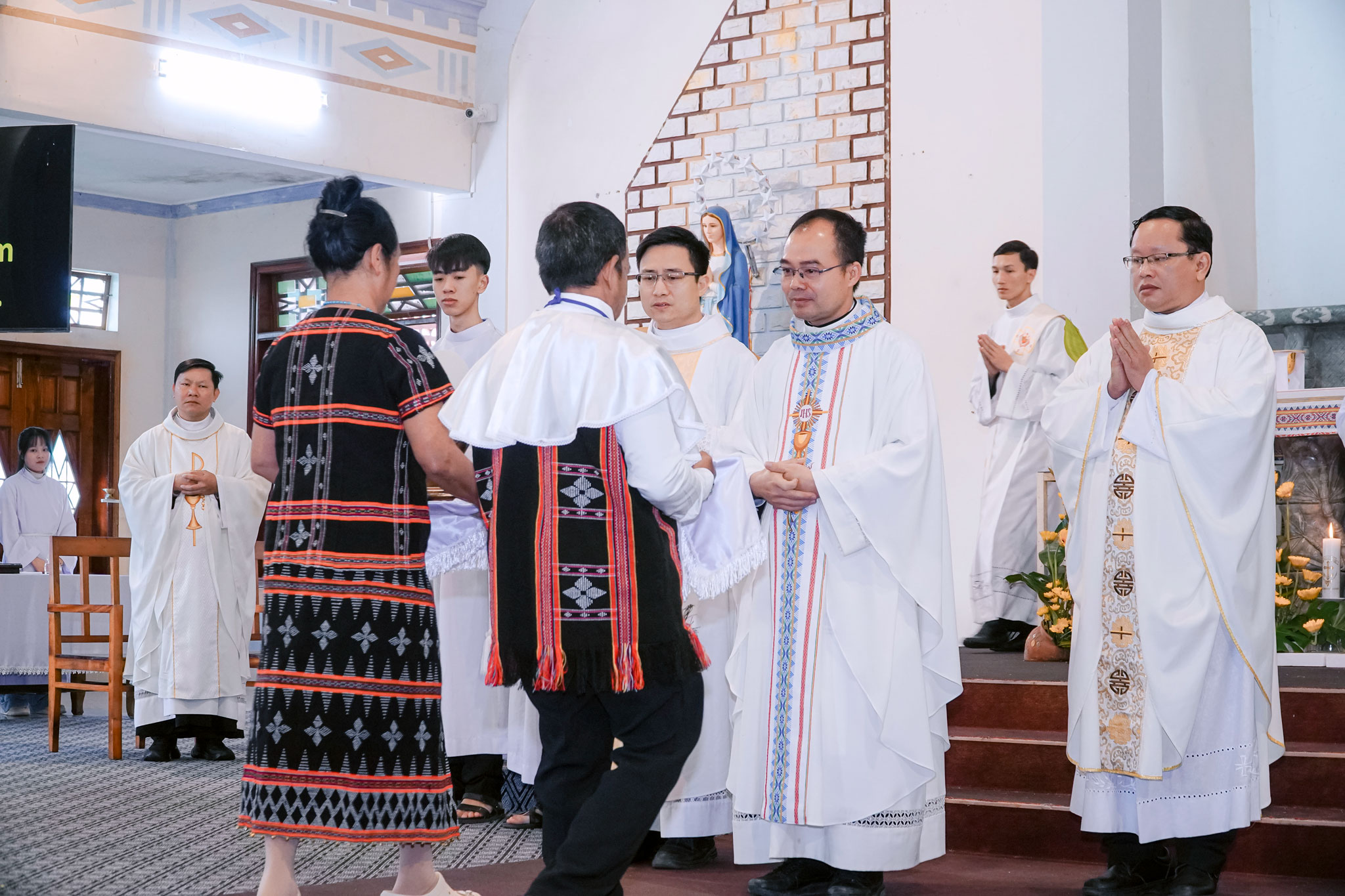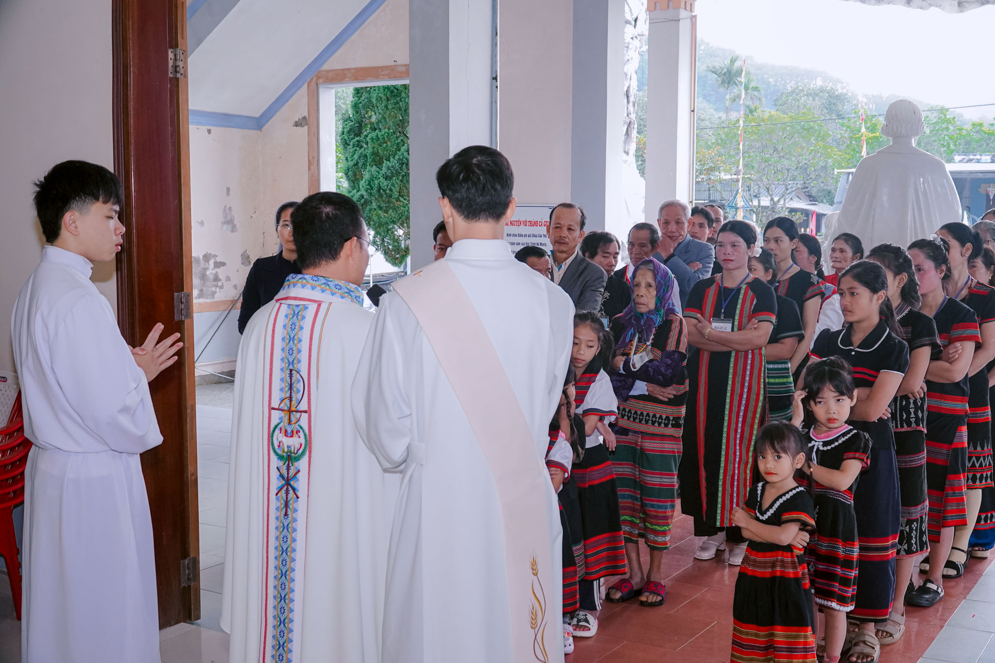 Đồng tế với Cha Quản xứ có Cha Bênêđictô Lê Quang Viên, Chủ tịch Ủy ban Truyền giáo Tổng Giáo phận Huế; cha giáo Giuse Vũ Thanh Tuấn đến từ Đại Chủng viện Huế cùng quý Cha đang phục vụ tại Tu sở Thánh Tâm A Lưới. Sự hiện diện đông đảo của quý Cha và cộng đoàn dân Chúa đã làm nên một bức tranh hiệp thông sống động, đậm nét truyền giáo trong ngày lễ trọng đại này.