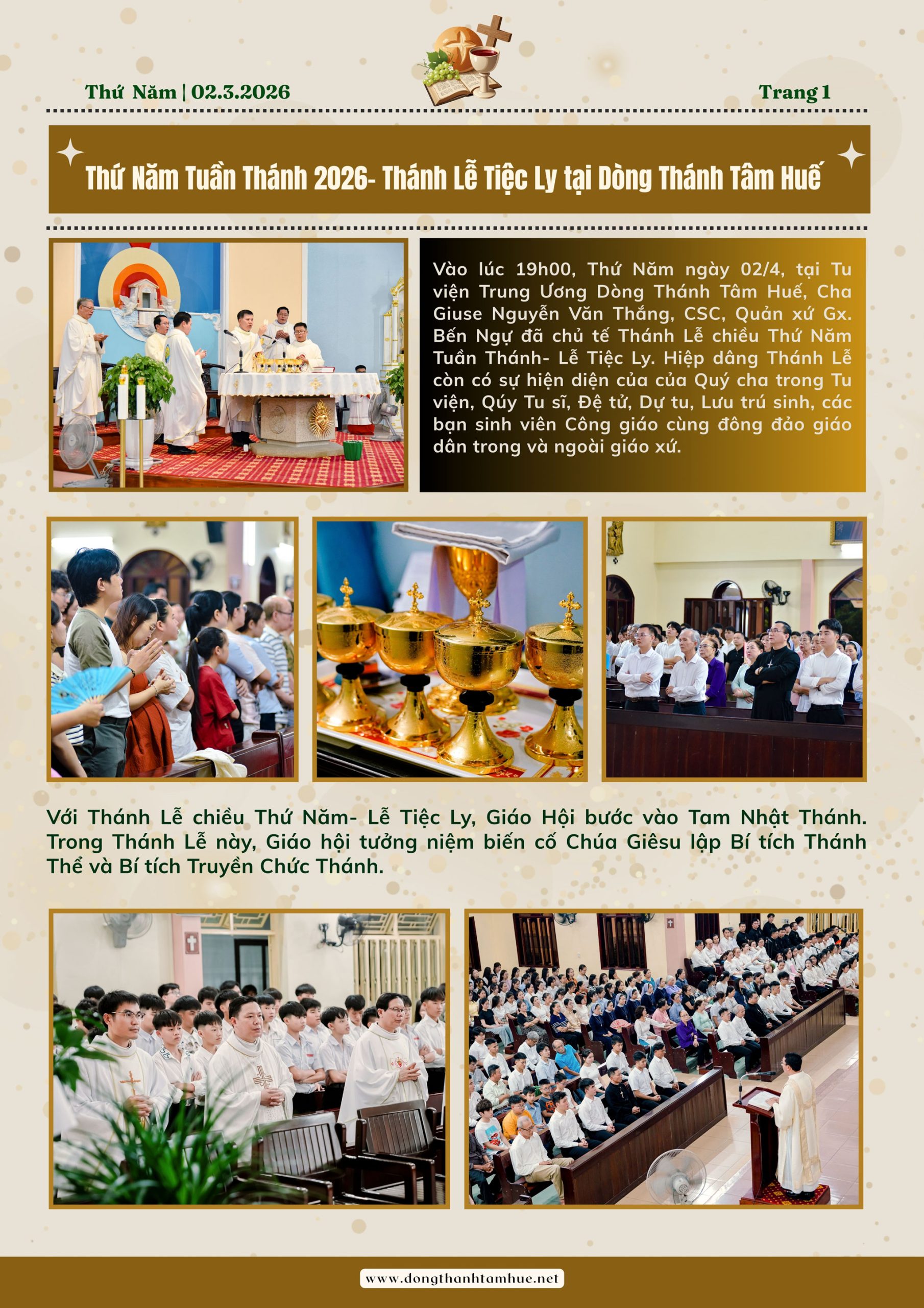Dòng Thánh Tâm Huế, Tin tứcThứ Năm Tuần Thánh 2026- Thánh Lễ Tiệc Ly tại Dòng Thánh Tâm Huế Xem thêm nhiều hình ảnh tại đây Bài viết và hình ảnh: Đức Hoàng, CSC GẪM 14 CHẶNG ĐÀNG THÁNH GIÁ